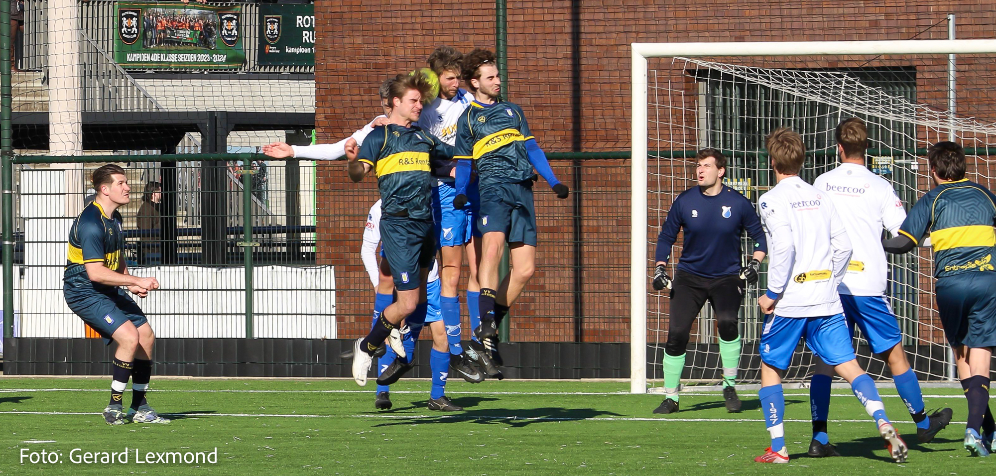Het maximale aantal spelers dat op een wedstrijdformulier van de KNVB past bij de amateurs werd volledig benut, liefst 18 spelers in blauw wit verschenen op het veld. Niet gek ook, want zaterdag ging het ‘om de knikkers’ en dat was ook te zien langs de lijn waar wederom vele vrienden, familie en kids zich hadden verzameld op de zonnige tribune en rondom de dug-out.
