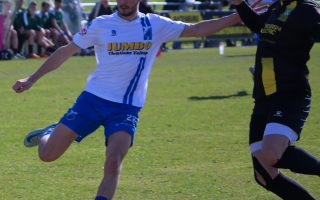 Kopballen van Kjell Scheers hebben te weinig vaart of gaan helaas net naast