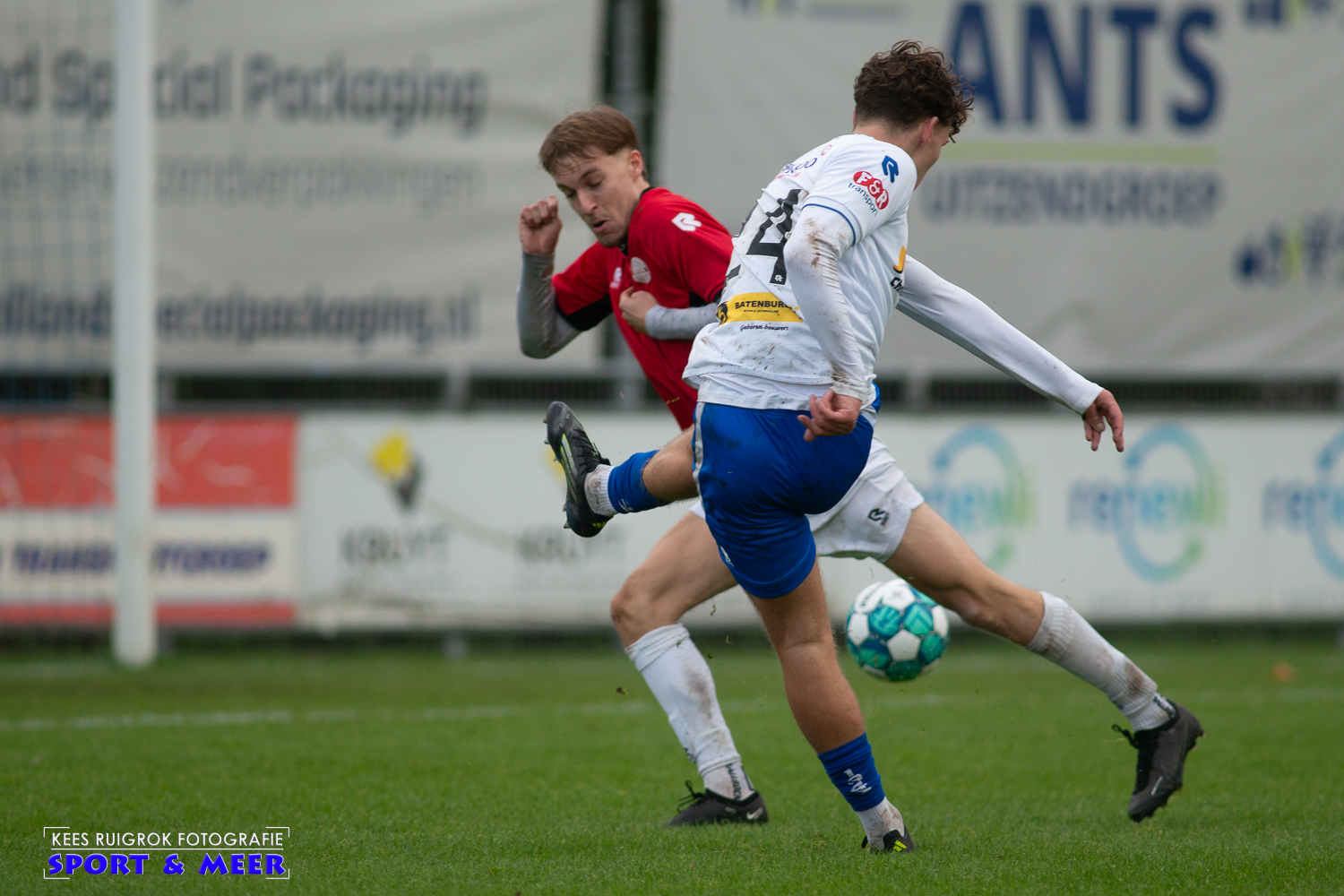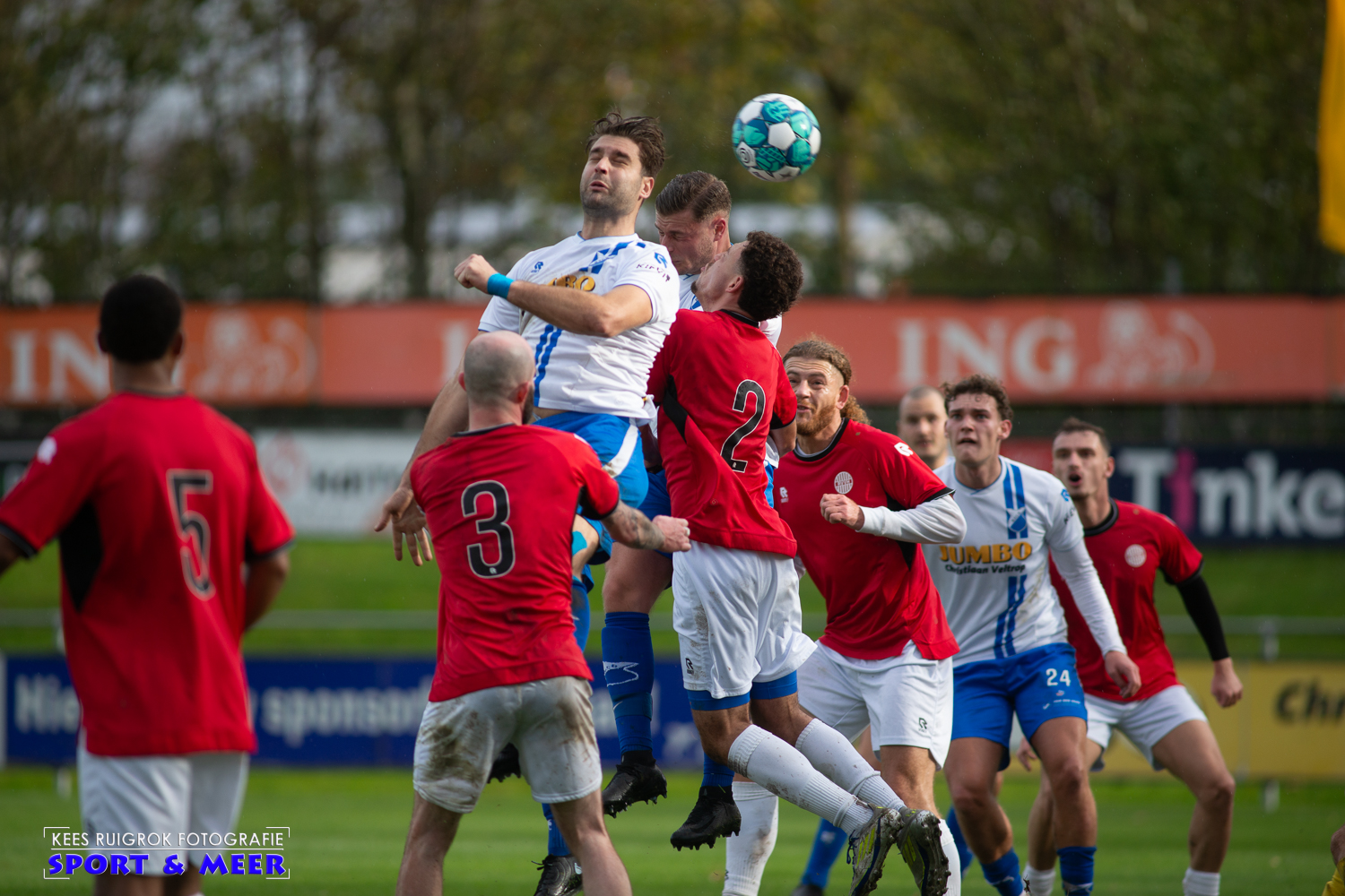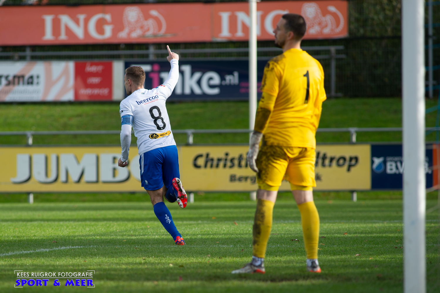 Het zijn de spaarzame lichtpuntjes in het spel van BVCB, dat vooralsnog niet om naar huis te schrijven is. Wouter van der Werff die eerder al een paar keer ontsnapt aan de Ridderkerkse verdediging heeft het vizier nog niet bepaald op scherp staan. Als er bijna een half uur is verstreken wil de behendige buitenspeler andermaal flink uithalen. Hij raakt de bal echter totaal verkeerd, waardoor het vermeende schot op doel een onbedoelde assist wordt. Brekelmans is de attente ontvanger, die met een perfecte kopstoot BVCB op 1-0 kopt.