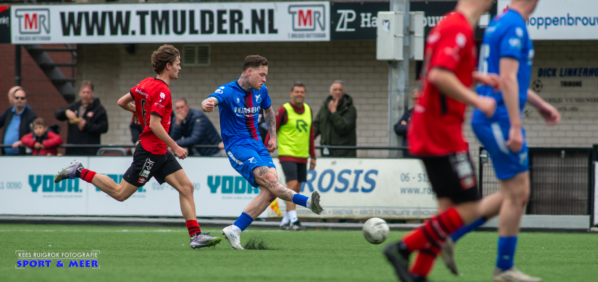 Het betere voetbal aan de kant van de ploeg van interim-trainer Omar Khan, die het seizoen afmaakt na het ontslag van Raymond Kraaijbeek begin maart, leidt tot geen grote kansen. Wel is Jayson Vermeulen dicht bij de gelijkmaker, maar zijn schot eindigt op de bovenkant van de lat. Nieuwerkerk moet het vooral hebben van de snelheid en ingevingen van routinier Philippe den Hartog, die Manuhutu een lastige middag bezorgt. De goede acties en idem voortzettingen leveren nog geen succes op, al scheelt het twintig minuten voor tijd slechts een fractie, als de bal voorbij het BVCBdoel rolt.