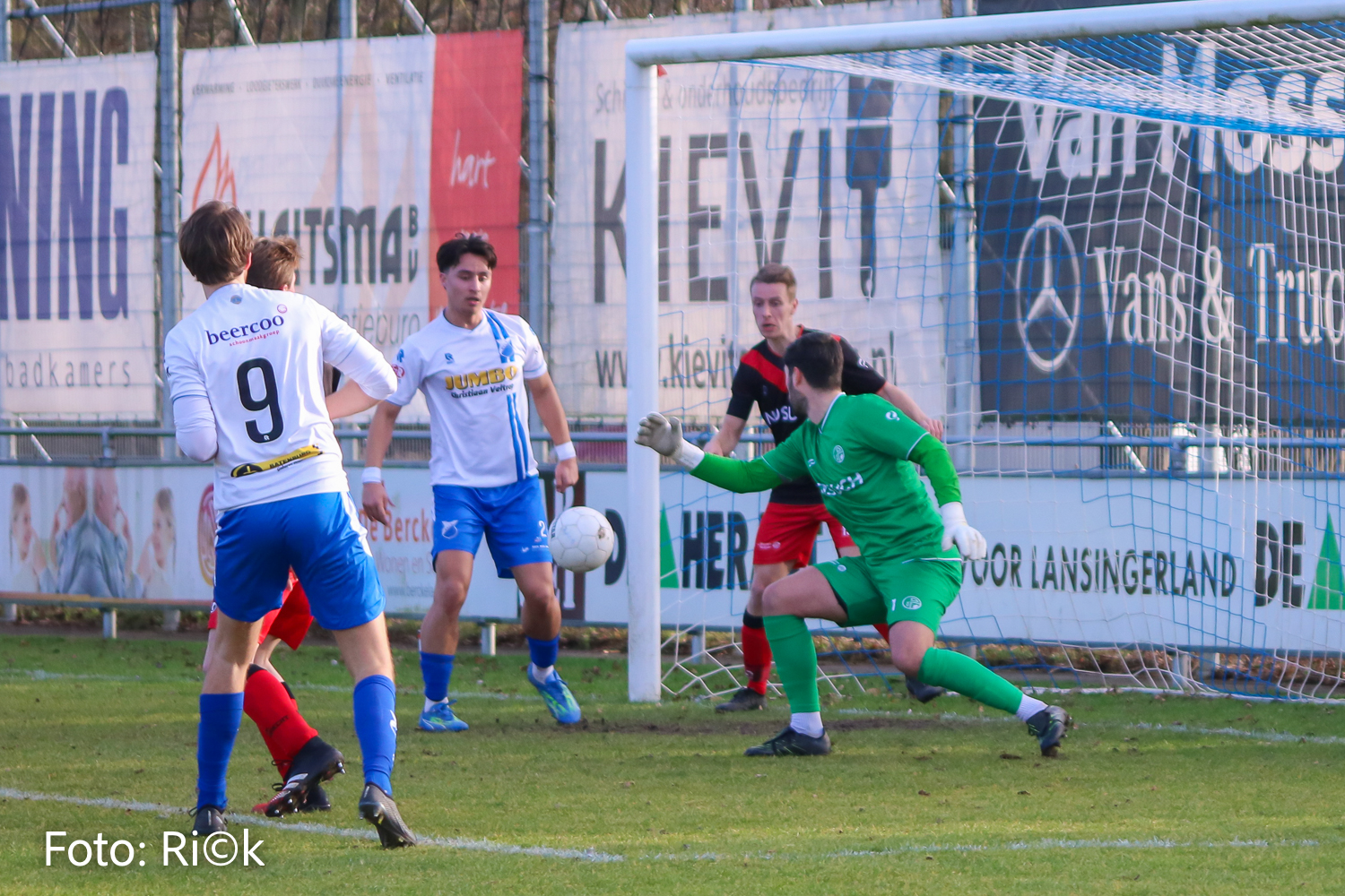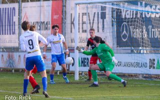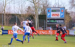 Coen Barg, op de rug te zien (nr.9) maakt in de tweede helft de openingstreffer