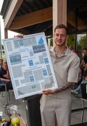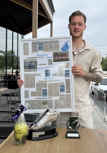 Tot Speler van het Jaar 2024-2025 wordt Marciano Pape gekozen. De van Capelle overgekomen speler maakte met name in het begin van het seizoen indruk met zijn sterke en gedreven spel. Pape heeft zijn uitverkiezing te danken aan zijn wilskracht, spelinzicht en tomeloze inzet. Behalve Speler van het Jaar is hij ook topscoorder van de ploeg geworden. Ook Pape ontvangt de fles met gele inhoud, een fraai ingelijst overzicht van het afgelopen seizoen en uiteraard de wisseltrofee.