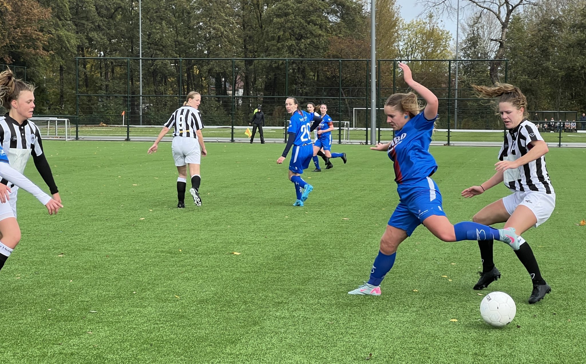 BVCB werkte hard en kreeg ook wel kansjes. Desiré kon de bal op doel schieten na een voorzet van Finett. Nikita schoot in de 28e minuut op doel, nadat ze zichzelf vrij had gespeeld. Niet veel later zocht Finett het doel op een andere plek, waardoor de bal naast ging. Eline werd in kansrijke positie aangespeeld, maar wist de bal niet direct op doel te schieten. Er ontstond een duel en speelster kwamen op de grond terecht. In een uiterste poging probeerde Eline de bal al zittend nog in het doel te spelen, maar dit lukte niet. Ook Finett kon vanuit een hoekschop het doel onder vuur nemen, maar de overtuiging ontbrak en zo ging ook deze mogelijkheid verloren. Al met al leek BVCB de overhand langzaam maar zeker te krijgen.